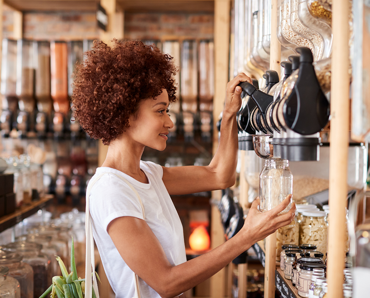Einige Städte haben sogenannte Unverpackt-Läden, in denen man seine Lebensmittel ohne Umverpackung bekommt. Für den Einkauf nimmt man sich die Behältnisse von Zuhause mit. Plastikverpackungen adé! Aber auch in Supermärkten gibt es mittlerweile oft die Möglichkeit zumindest Obst und Gemüse unverpackt zu kaufen.